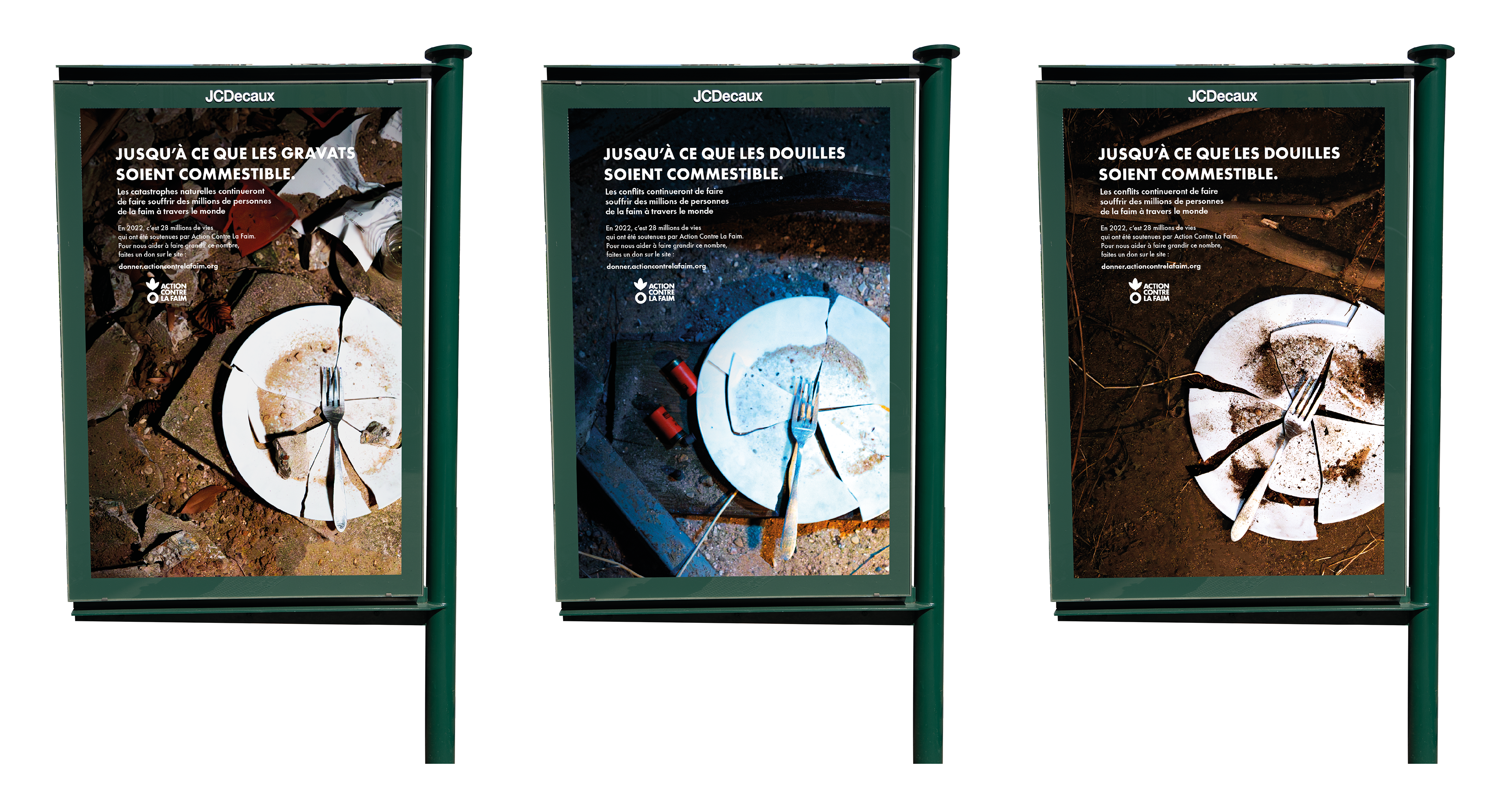 Campagne d'affichage pour Action contre la faim dans le but de sensibiliser les gens aux causes majeurs des souffrances liées à la faim dans le monde et ainsi, de les inciter à faire des dons.